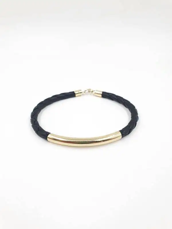 Brățară elegantă din piele naturală, decorată cu aur galben 14K ( 3.2g estimativ) . O bijuterie masculină modernă, lucrată manual cu atenție la detalii.